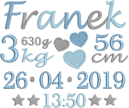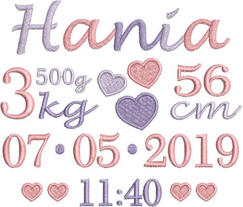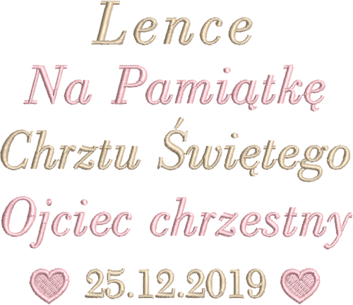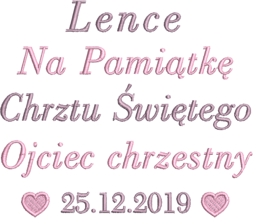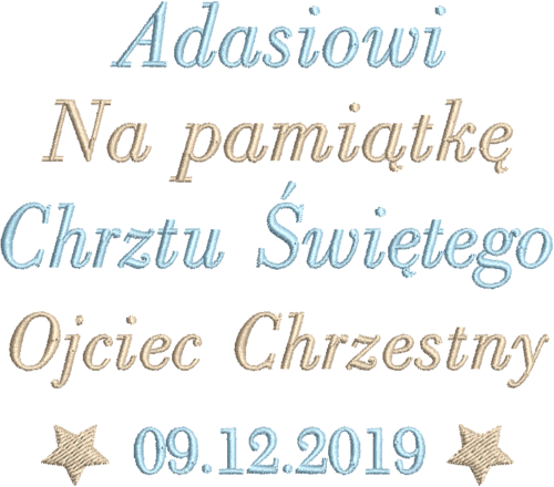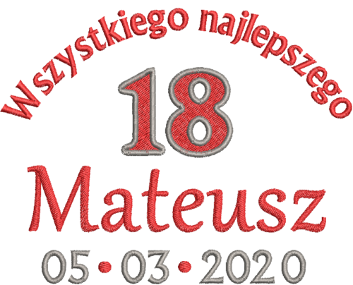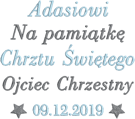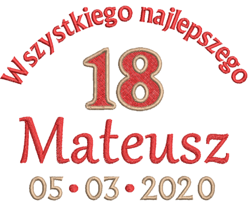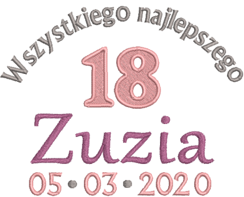 * Zamieszczony haft (wzór) ma jedynie charakter poglądowy. Rzeczywisty wygląd haftu może odbiegać od prezentowanego na wizualizacji.